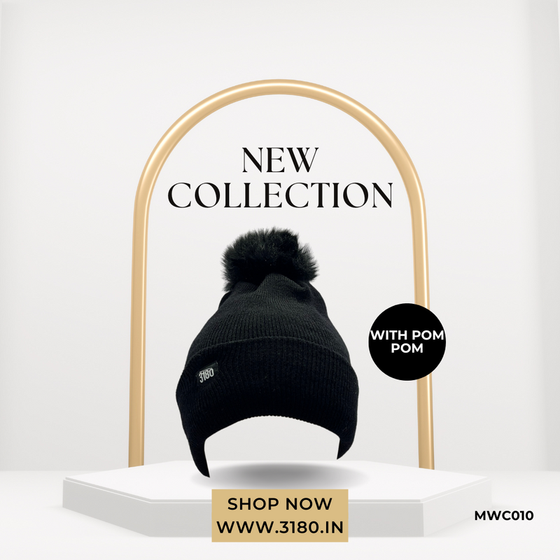 Men’s Winter Black Pom-Pom Cap – Stylish, Warm & Premium Quality | 3180