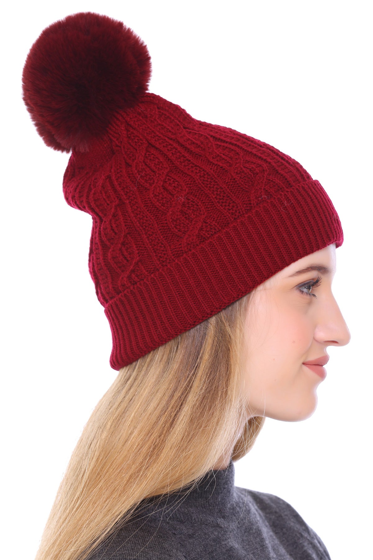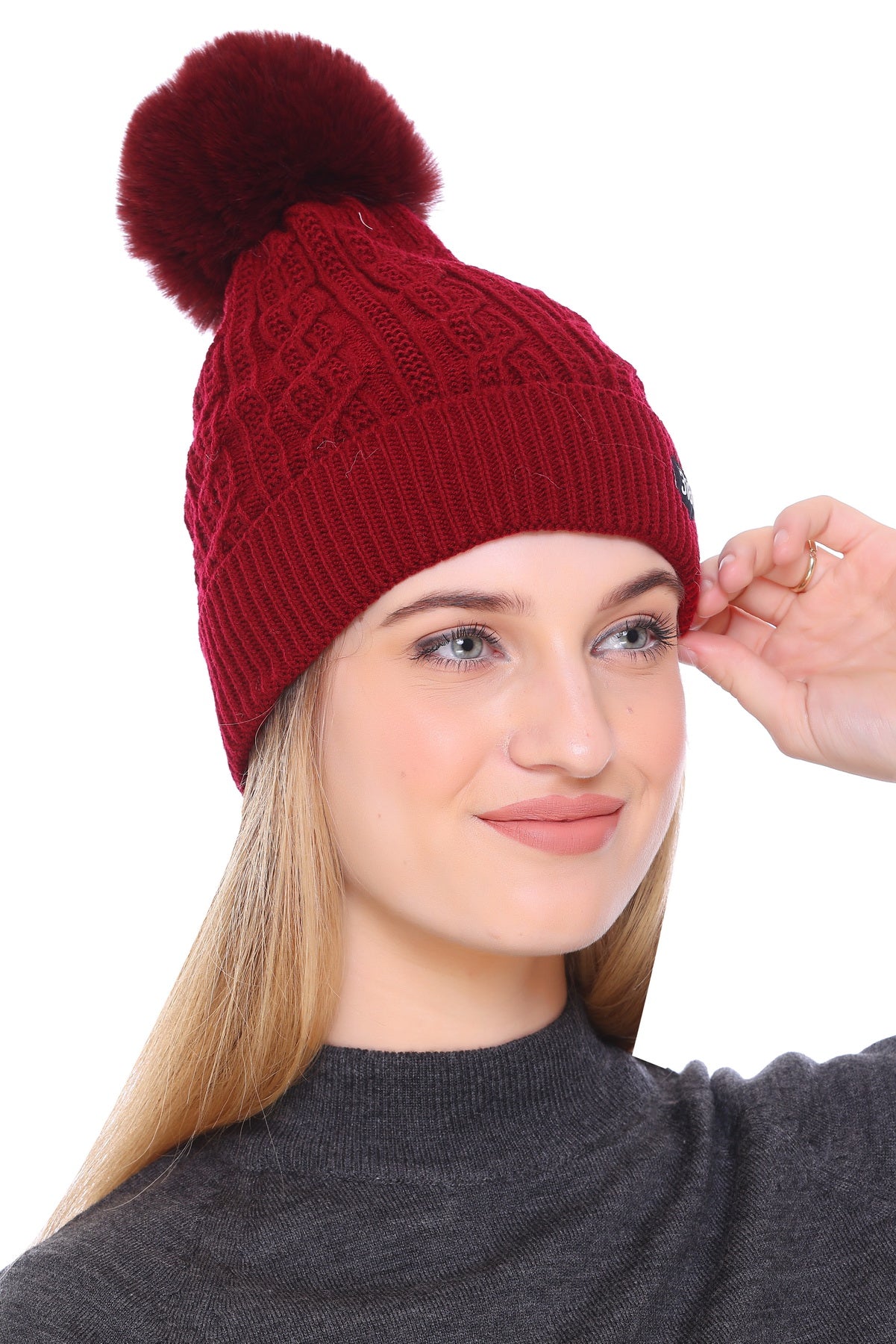 Chic and Cozy: Women's Mehroon Pom Pom Cap for Winter
