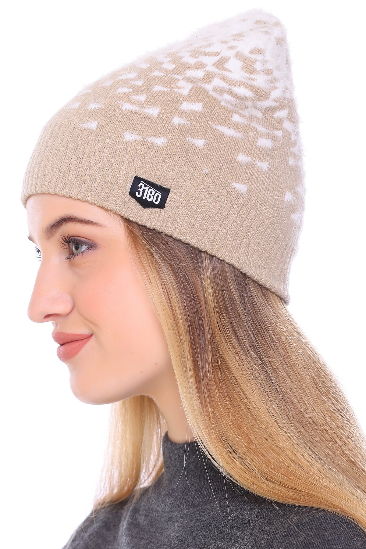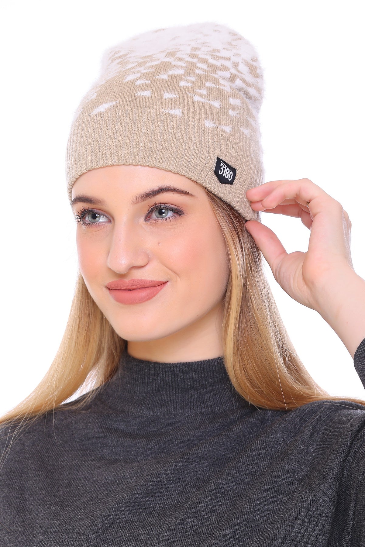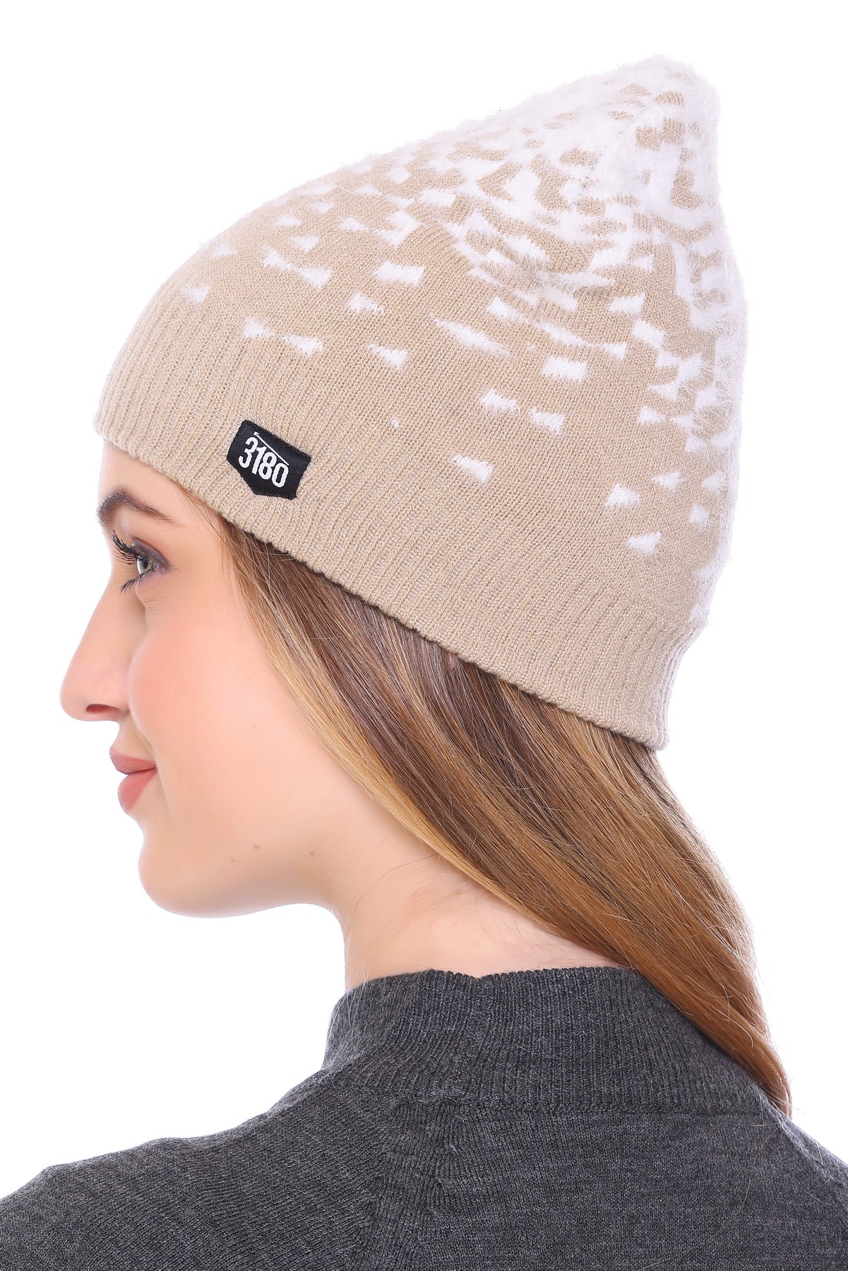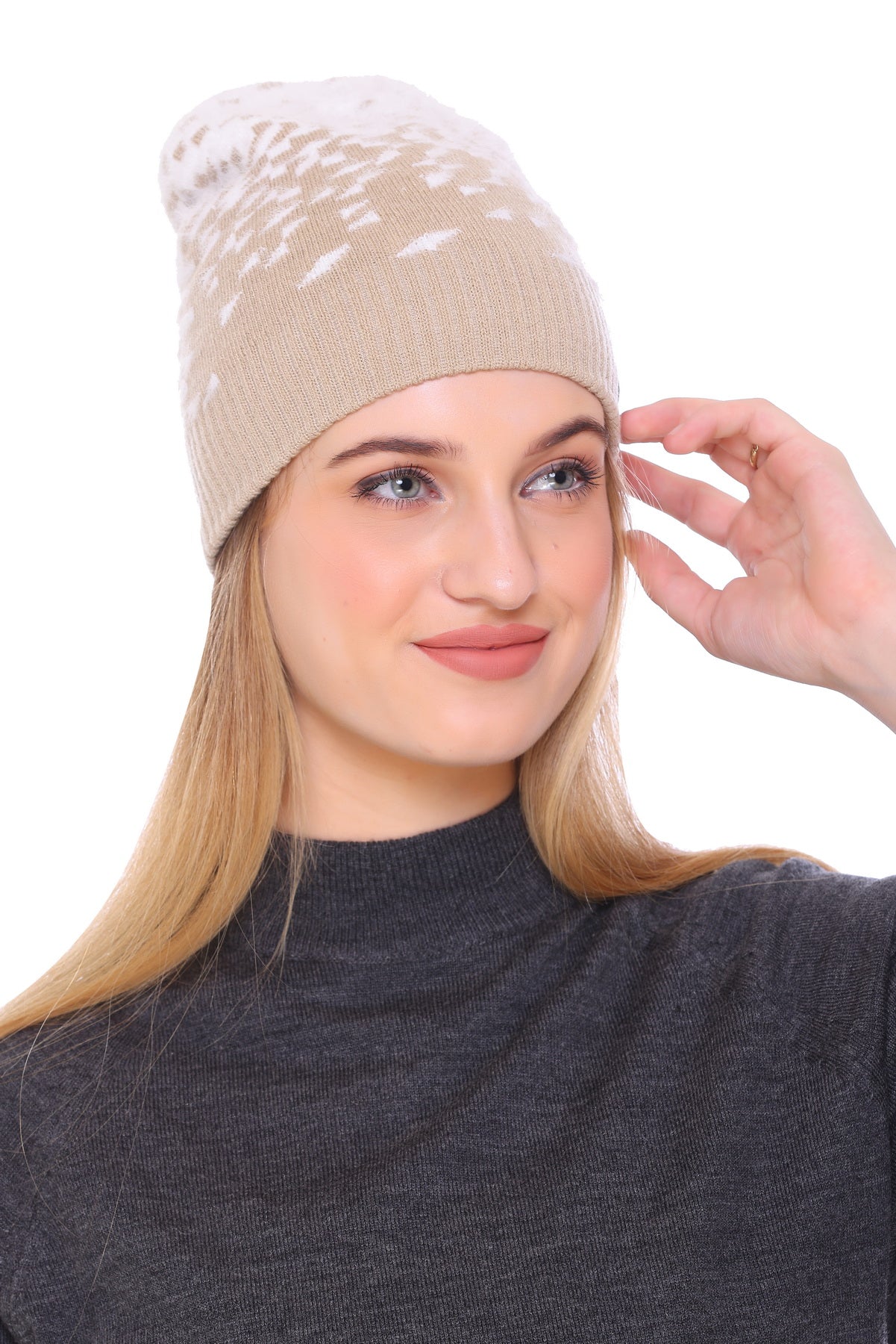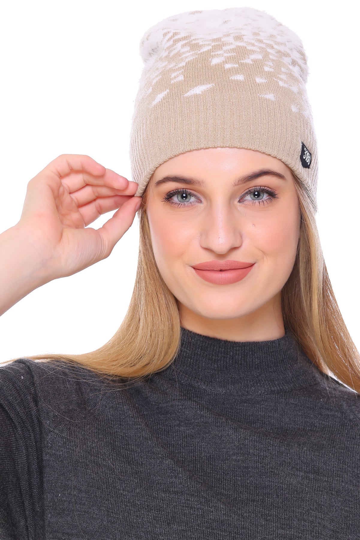 Cloud-Kissed Elegance: Beige Bliss Ladies Winter Cap with White Yarn for Ultimate Comfort