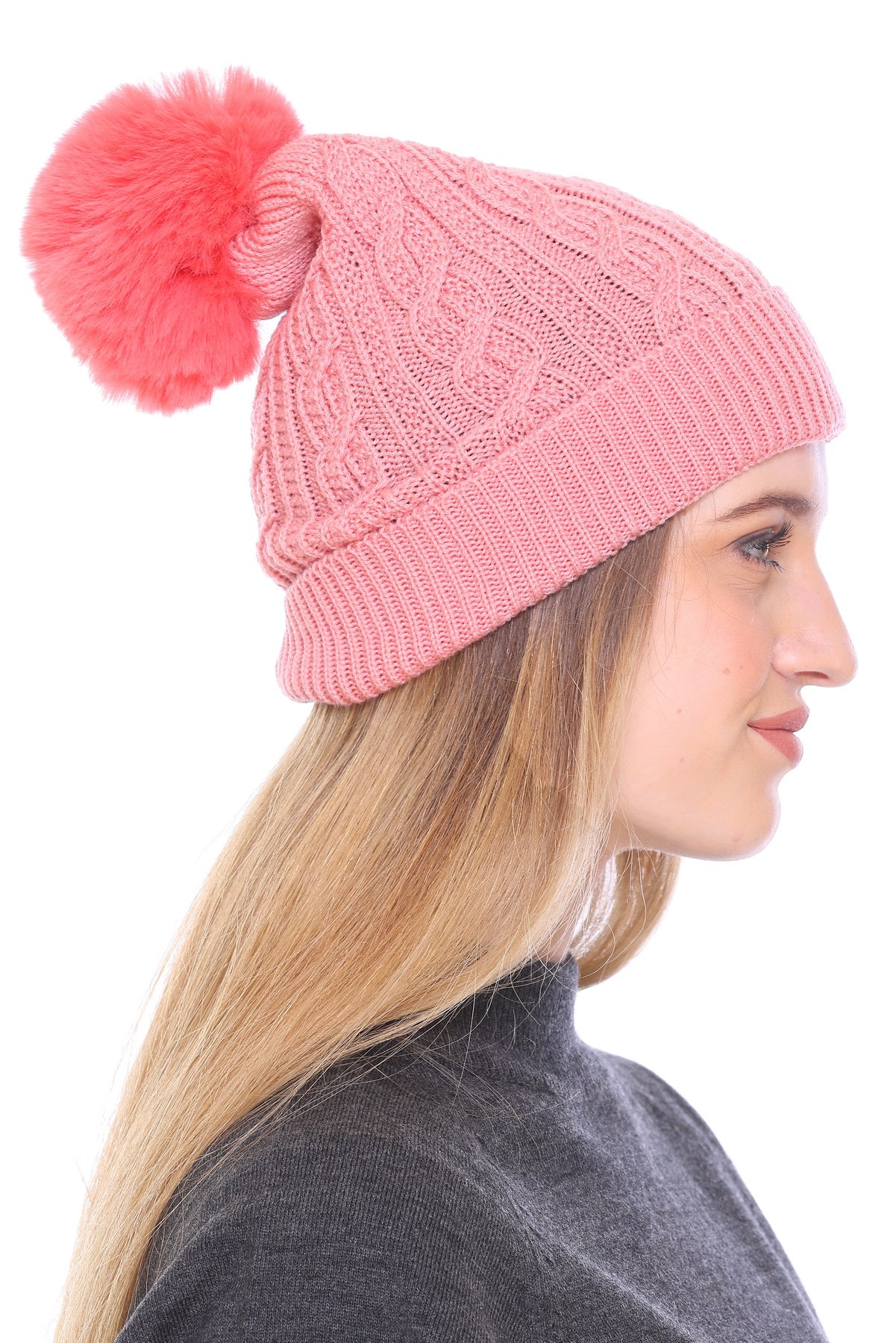 Radiant Winter Bloom: Ladies Fuchsia Pink Beanie Cap with Pom Pom and Perfect Fold for Cozy Elegance