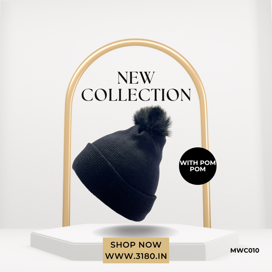 Men’s Winter Black Pom-Pom Cap – Stylish, Warm & Premium Quality | 3180