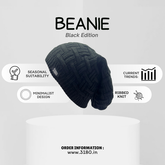 Men’s Winter Black Beanie Cap – Soft, Comfortable & Stylish | 3180